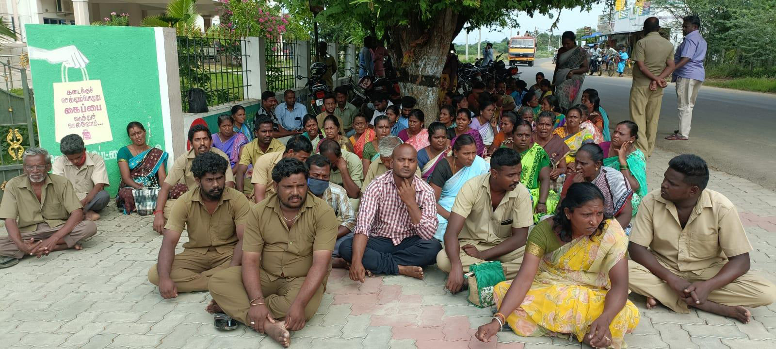 துப்புரவு பணியாளர்கள் தரையில் அமர்ந்து தர்ணா