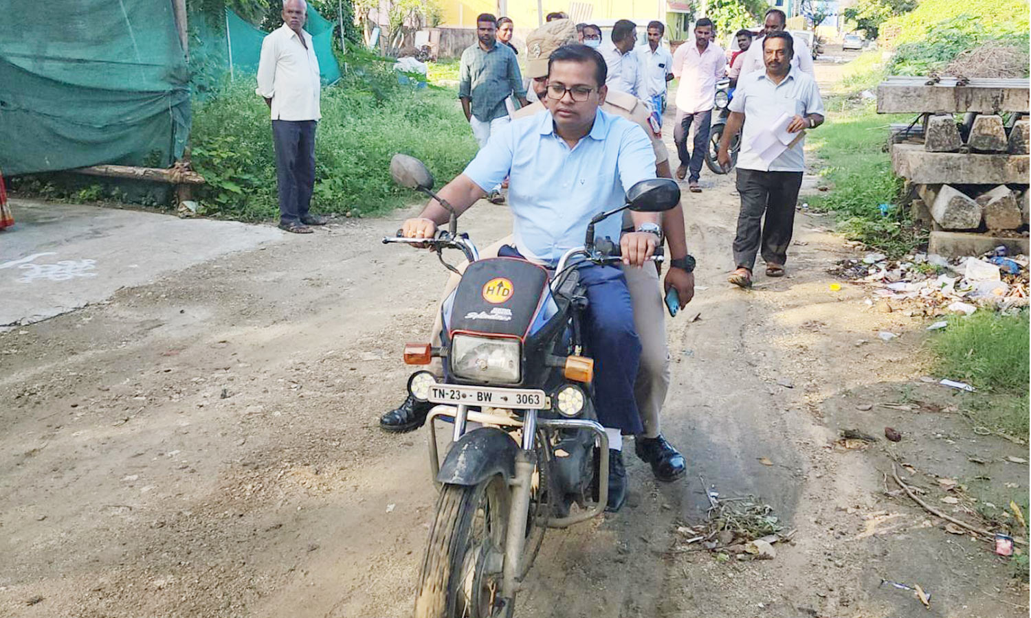 - கலெக்டர் பைக்கில் சென்று பார்வையிட்டார்