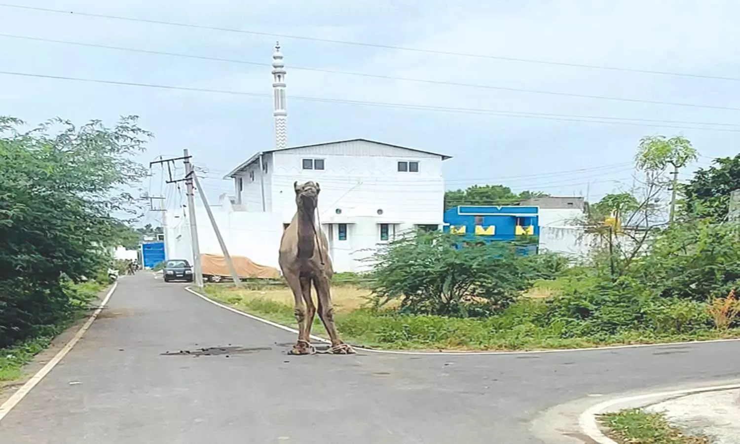 குர்பானி கொடுக்க கொண்டுவரப்பட்ட ஒட்டகம்.