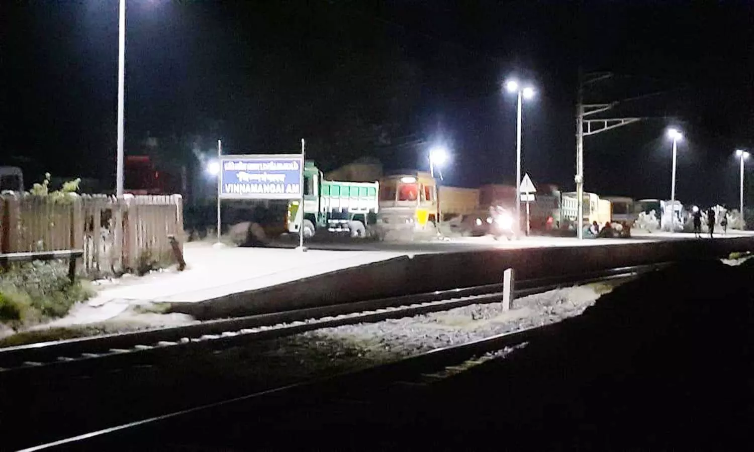 நேற்று இரவு இது போன்று ஒரு சம்பவம் நடந்தது லாரிகள் மீது ெரயில் மோதி விபத்து ஏற்படும் அபாயம் உள்ளது.