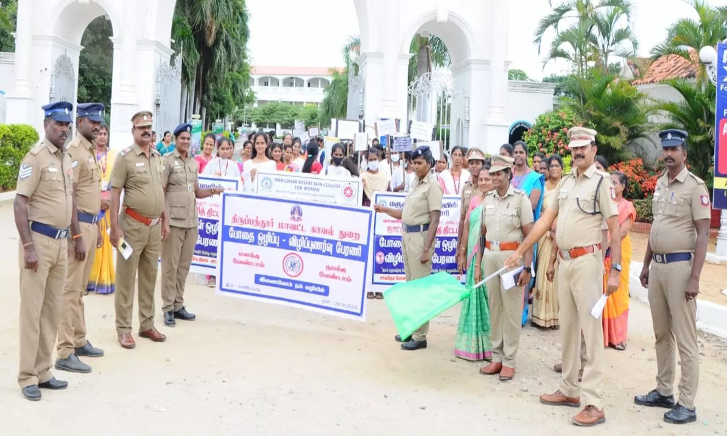 திருப்பத்தூர் மாவட்டம், வாணியம்பாடி மருதர் கேசரி ஜெயின் மகளிர் கல்லூரியில் உலக போதை பொருள் ஒழிப்பு தினத்தை முன்னிட்டு கல்லூரி நாட்டு நலப்பணி திட்ட மாணவிகள் விழிப்புணர்வு பேரணி நடத்தினர்.