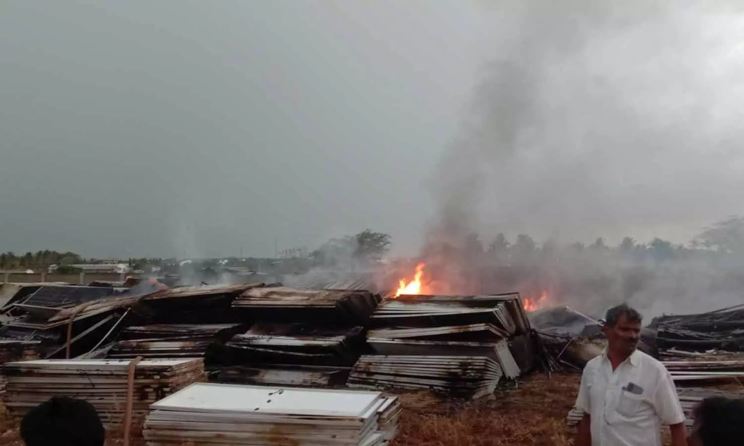 அதனைப் பொருத்தும் வேலைகள் நடைபெற்று வந்ததாக கூறப்படுகிறது. டெக்டைல்ஸ் நிறுவனத்தில் உள்ள காலி இடத்தில் சூரிய ஒளி மின் தகடுகள் அடுக்கி வைக்கப்பட்டிருந்தன. இந்த நிலையில் நேற்று மாலை அந்த இடத்தில் அருகே இருந்த காய்ந்த புற்களில் திடீர் தீ விபத்து ஏற்பட்டுள்ளது. தீ மளமளவென பரவி சூரிய ஒளி மின் தகடுகளில் தீ பற்றியது.