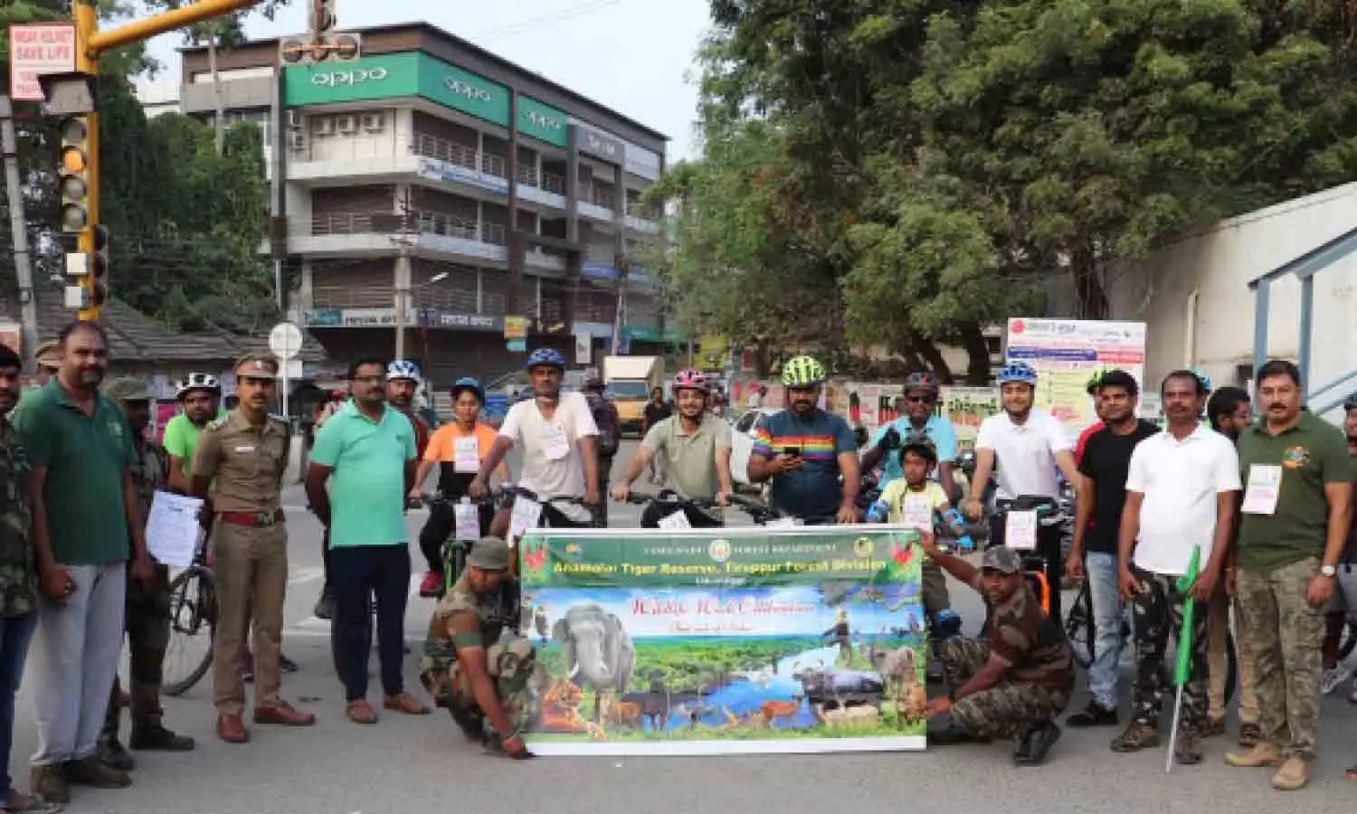 திருப்பூர் வனக்கோட்டம், திருப்பூர் வனச்சரகத்தில் ஆனைமலை புலிகள் காப்பகம் சார்பில் கடந்த ஒரு வார காலமாக வன உயிரின வார விழா கொண்டாட்டங்கள் நடைபெற்று வருகிறது. இதை முன்னிட்டு பல்வேறு நிகழ்ச்சிகள் நடைபெற்று வருகின்றன. இந்நிலையில், வன உயிரின வார விழாவின் கடைசி நாள் கொண்டாட்டங்களாக வன உயிரினங்களின் பாதுகாப்பை வலியுறுத்தி திருப்பூர் வனச்சரகத்தில் சைக்கிள் பேரணி நடைபெற்றது. இதில் திருப்பூர் மாநகராட்சி ஆணையர் பவன் குமார் ஜி. கிரியப்பனவர் மற்றும் திருப்பூர் சப்-கலெக்டர் ஸ்ருதன் ஜெய் நாராயணன் ஆகியோர் கலந்து ெகாண்டு வன உயிரின பாதுகாப்பை வலியுறுத்தும் வகையில் சைக்கிள் ஓட்டினர். மேலும் பொது மக்களுக்கு வன உயிரின பாதுகாப்பு விழிப்புணர்வை ஏற்படுத்தும் வகையில் தமிழ்நாடு வனத்துறை மூலமாக துண்டு பிரசுரங்கள் விநியோகிக்கப்பட்டன. இந்த சைக்கிள் பேரணி, திருப்பூர் அவினாசி ரோடு புஷ்பா தியேட்டர் பஸ் நிலையத்தில் இருந்து தொடங்கி அவிநாசி, பெருமாநல்லூர் வழியாக நஞ்சராயன் பறவைகள் சரணாலயத்தை சென்றடைந்தது. இதைத்தொடர்ந்து மரம் நடும் விழாவுடன் நிகழ்ச்சி நிறைவு பெற்றது.