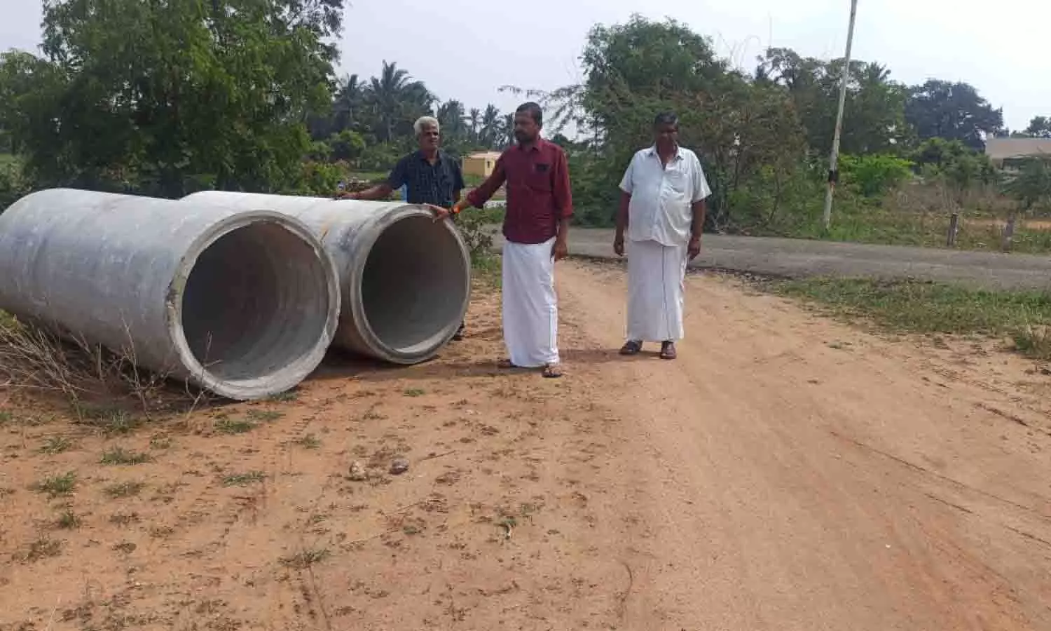 இதையடுத்து அந்த நீர்வழிப்பாதையில் பாலம் அமைக்க ரியல் எஸ்டேட் நிறுவனத்தினர் இச்சிப்பட்டி ஊராட்சியில் அனுமதி பெற்றனர். இந்த நிலையில் பாலம் அமைக்க, அதற்கான சிமெண்ட் குழாய்கள் கொண்டு வரப்பட்டது. சிமெண்ட் குழாய்களை இச்சிப்பட்டி ஊராட்சி மன்ற தலைவர் வேலுமணி பார்வையிட்டு ஆய்வு செய்தார்.