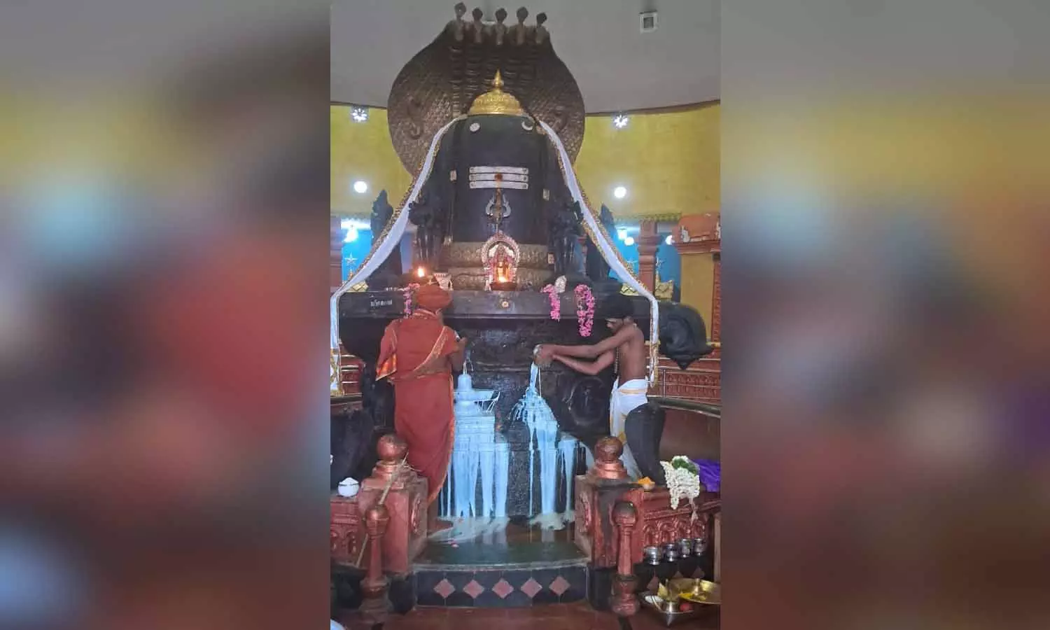 சிவலிங்கத்திற்கு அபிஷேக ஆராதனைகள் நடைபெற்றபோது எடுத்த படம்.