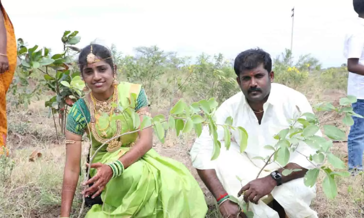 மணமக்கள் மரக்கன்றுகள் நட்டபோது எடுத்த படம்.