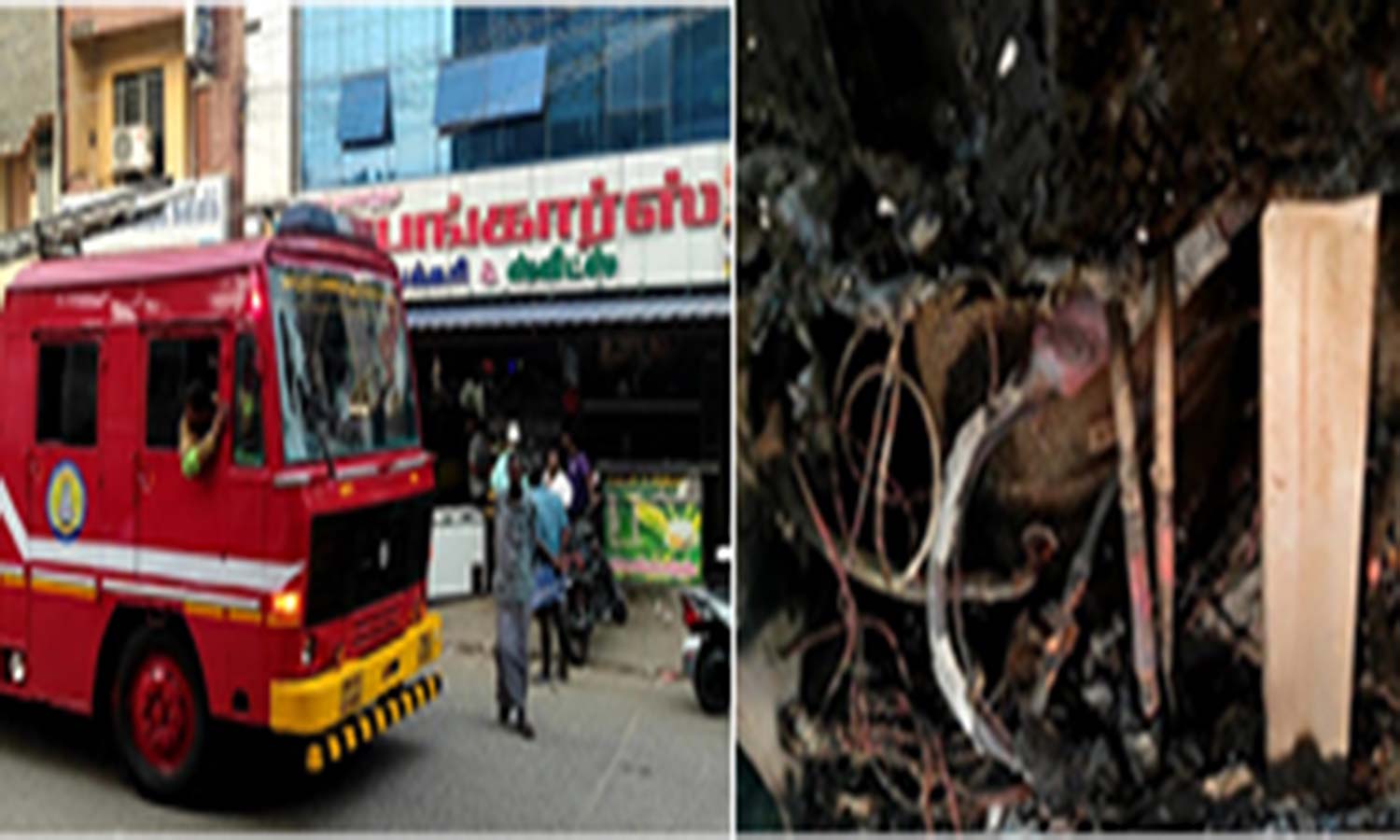 - மின் கசிவு காரணமாக தீ பிடித்திருப்பதை கண்டு மின்சாரத்தை துண்டித்தனர்
