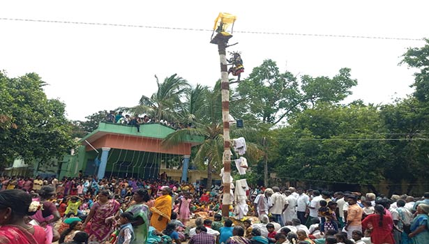 அப்போது குழந்தை வரம் வேண்டி விரதம் இருந்த பெண்கள் பனை மரத்தின் கீழே அமர்ந்தனர். அப்போது அர்ஜுனன் வேடமணிந்த நாடக கலைஞர் பனைமரத்தின் மேலே சென்று பூஜை செய்து மேலிருந்து எலுமிச்சம் பழங்களை பிரசாதமாக பெண்களுக்கு வழங்கினார்கள்.