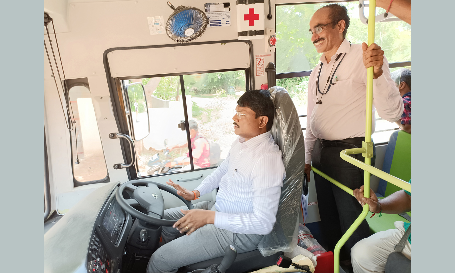 பள்ளி வாகனத்தை ஓட்டி பார்த்து கலெக்டர் ஆய்வு