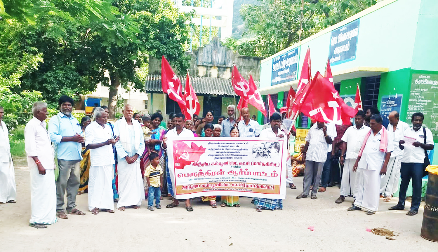 சந்தவாசல் கிளை செயலாளர் சிவக்குமார் தலைமை வகித்தார். வ.உ.சி. நகர் கிளை செயலாளர் பாஸ்கரன் முன்னிலை வகித்தார். மாவட்ட செயலாளர் சிவக்குமார் கண்டன உரையாற்றுகையில், "சந்தவாசல் வ.உ.சி. நகரில் வீடின்றி வசிக்கும் மக்களுக்கு வீட்டு மனைப்பட்டா வழங்க வேண்டும். சந்தவாசல் பாரதியார் நகர் மண்சாலையை தார் சாலையாக அமைத்திட வேண்டும்.