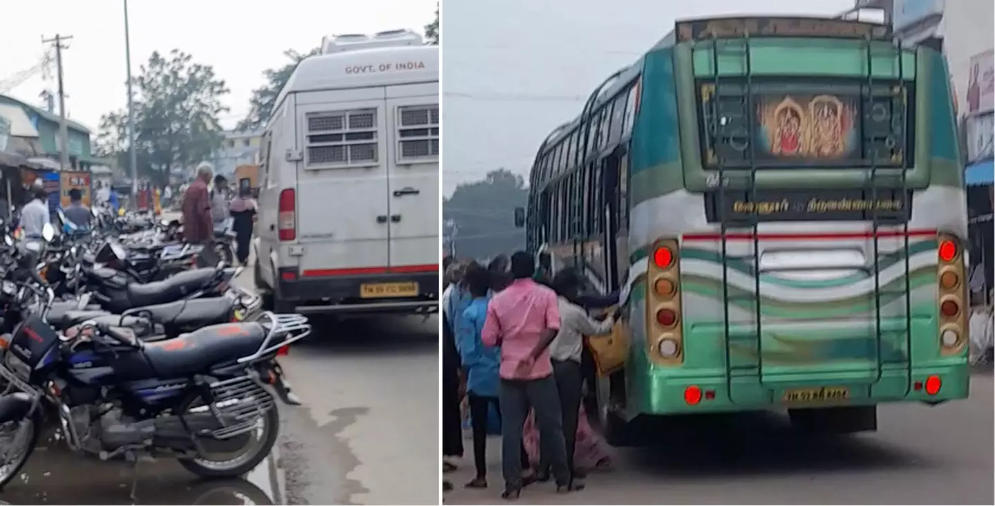 நடுரோட்டில் நிற்கும் வாகனங்கள்.