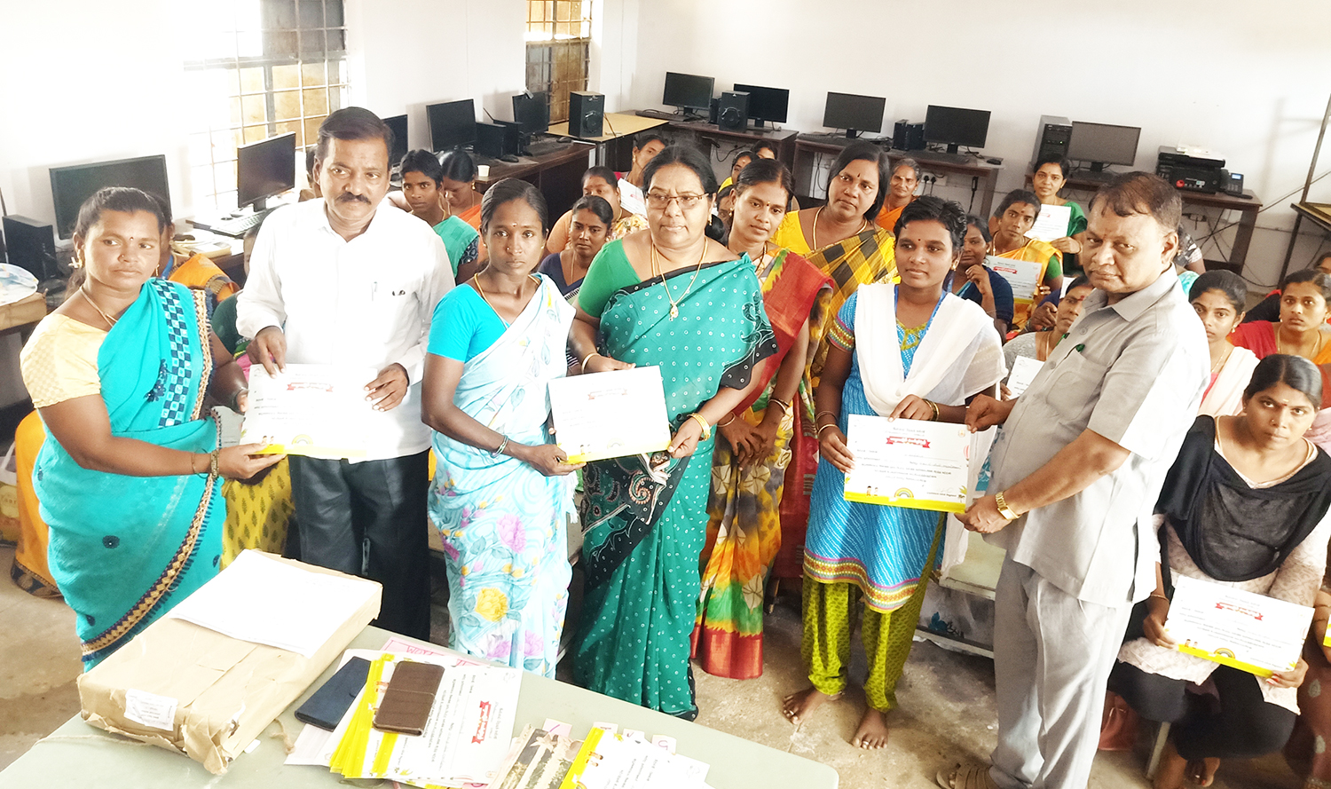 பயிற்சி முகாமில் வட்டார கல்வி அலுவலர் குணசேகரன், சான்றிதழ் வழங்கிய போது எடுத்த படம்.