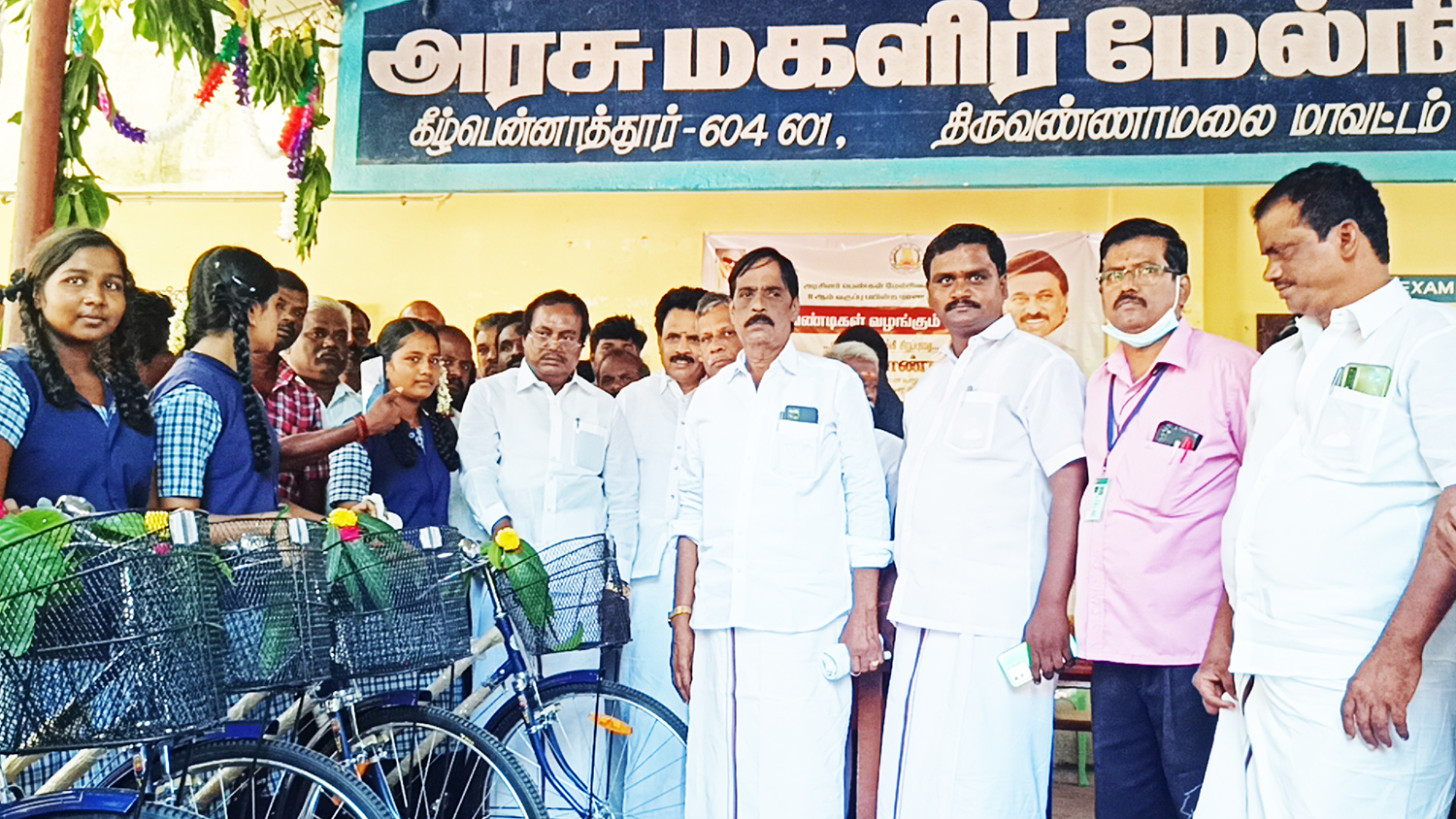 கீழ்பென்னாத்தூர் ஒன்றியத்தில் உள்ள அரசு மேல்நிலைப்பள்ளி மாணவர்களுக்கு இலவச சைக்கிள்களை துணை சபாநாயகர் கு.பிச்சாண்டி வழங்கினார்.