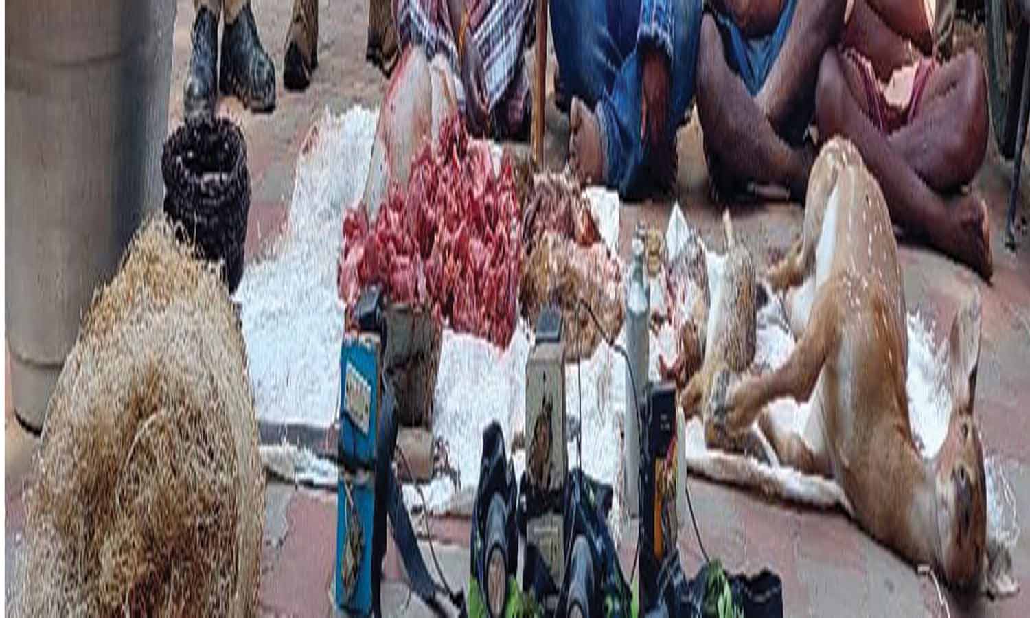அவர்களிடமிருந்து மான் இறைச்சி, மான் தோல் மற்றும் ஒரு நாட்டுத் துப்பாக்கி, பேட்டரி, கத்தி 3 பைக்குகள் உள்ளிட்ட வைகளை போலீசார் பறிமுதல் செய்தனர்.