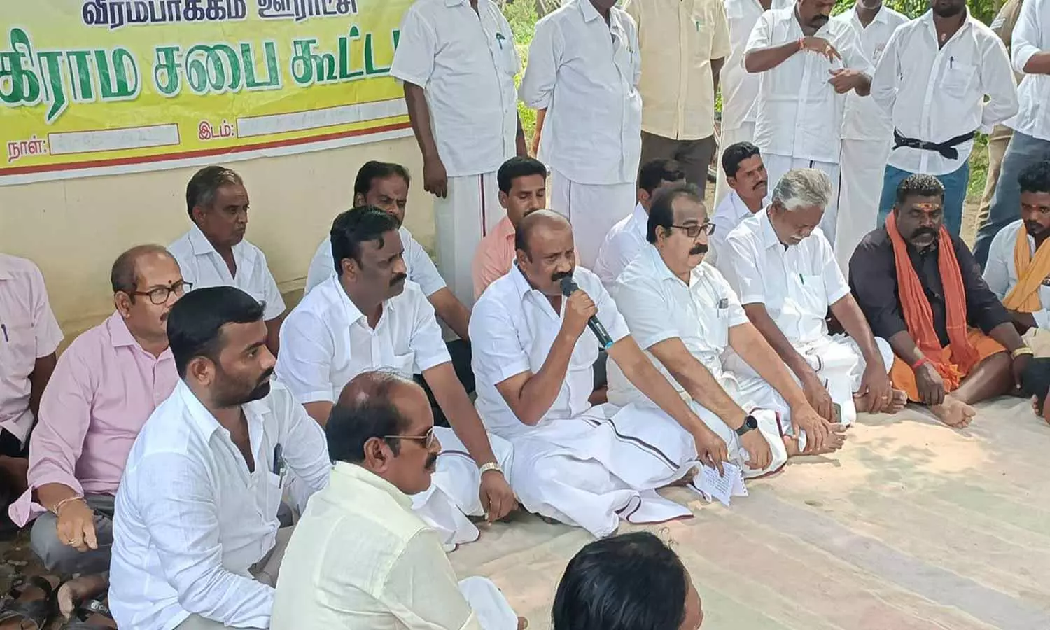 வீரம்பாக்கம் கிராமத்தில் நடைபெற்ற சிறப்பு கிராம சபா கூட்டத்தில் ஒ.ஜோதி எம்.எல்.ஏ. பங்கேற்று பேசிய காட்சி.