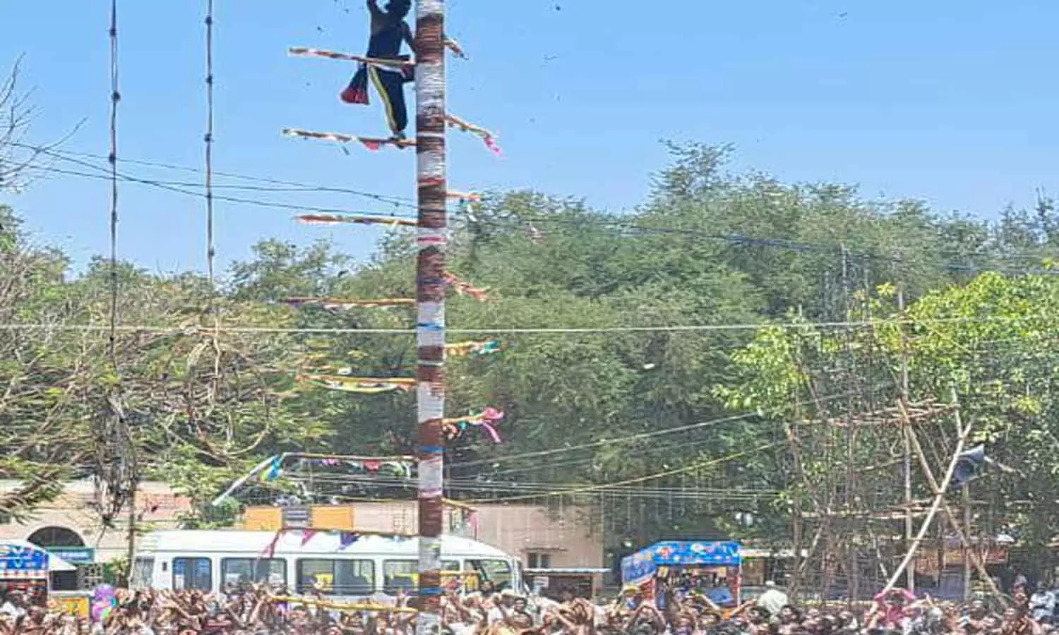 இந்த விழாவில் அர்ச்சுனன் தபசு மரம் ஏறும் நிகழ்ச்சி நேற்று 17-ந்தேதி கோவில் முன்பு அமைக்கப்பட்ட பிரமாண்ட தபசு மரத்தில் அர்ச்சுனன் வேடமணிந்து நாடக நடிகர் உச்சியில் தபசு செய்து ஈசனிடம் பாசுபதாஸ்திரம் வேண்டினார்.