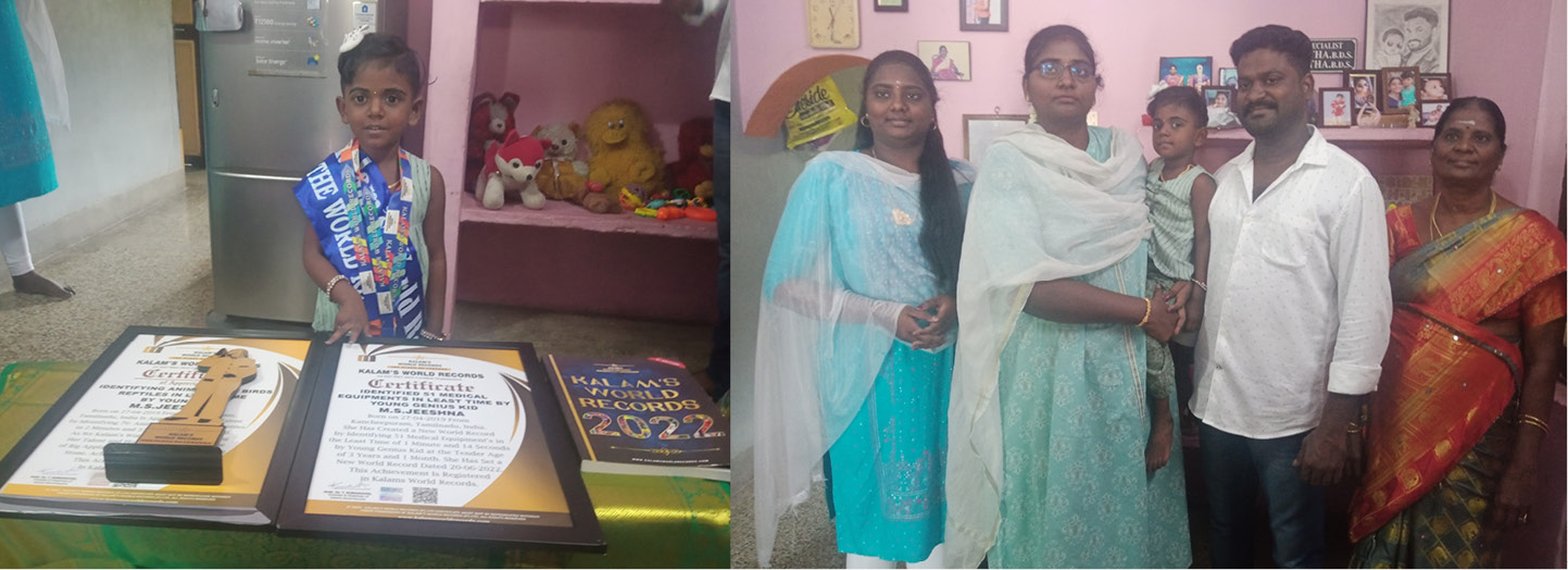 உபகரணங்கள் பெயரை சரளமாக சொல்லி அசத்தும் சிறுமி வருங்காலத்தில் உயரிய பதவிக்கு வரவேண்டும் என்றும் மேலும் பல உலக சாதனைகளை படைக்க வேண்டும் என்று சமூக ஆர்வலர்கள் தொண்டு நிறுவனங்கள் மாதர் சங்கத்தினர் சிறுமிக்கு பாராட்டுகள் தெரிவித்து வாழ்த்தி வருகின்றனர்.