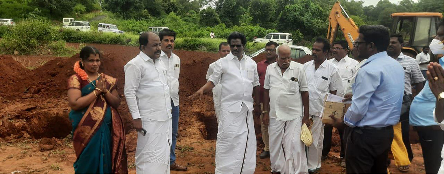 ஜவ்வாது மலையில்தமிழ்நாடு ஆதிதிராவிடர் வீட்டு வசதி மேம்பாட்டு தலைவர் மதிவாணன் ஆய்வு செய்த போது எடுத்த படம். அருகில் கலசப்பாக்கம் எம்எல்ஏ சரவணன்.