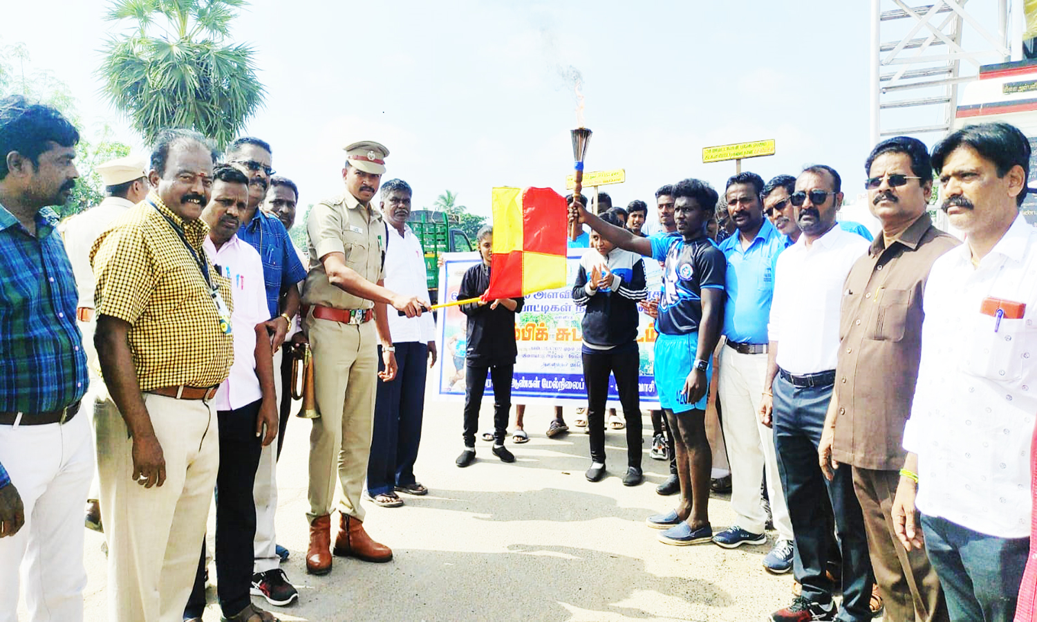 ஒலிம்பிக் சுடர் விழிப்புணர்வு தொடங்கி வைத்த காட்சி.