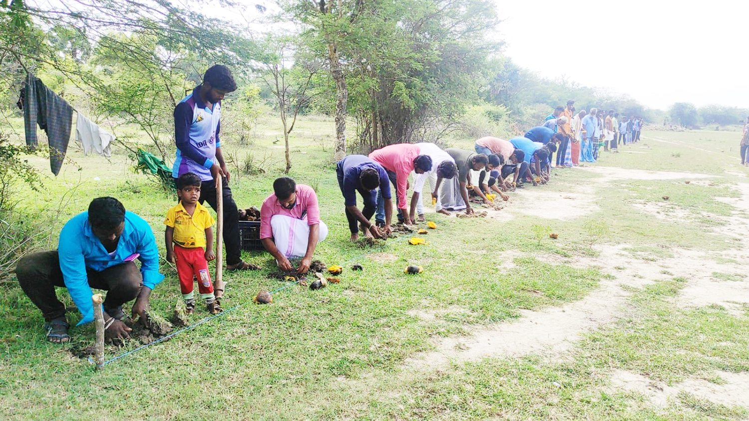 பனை விதைகளை நட்டு விழிப்புணர்வு ஏற்படுத்திய காட்சி.