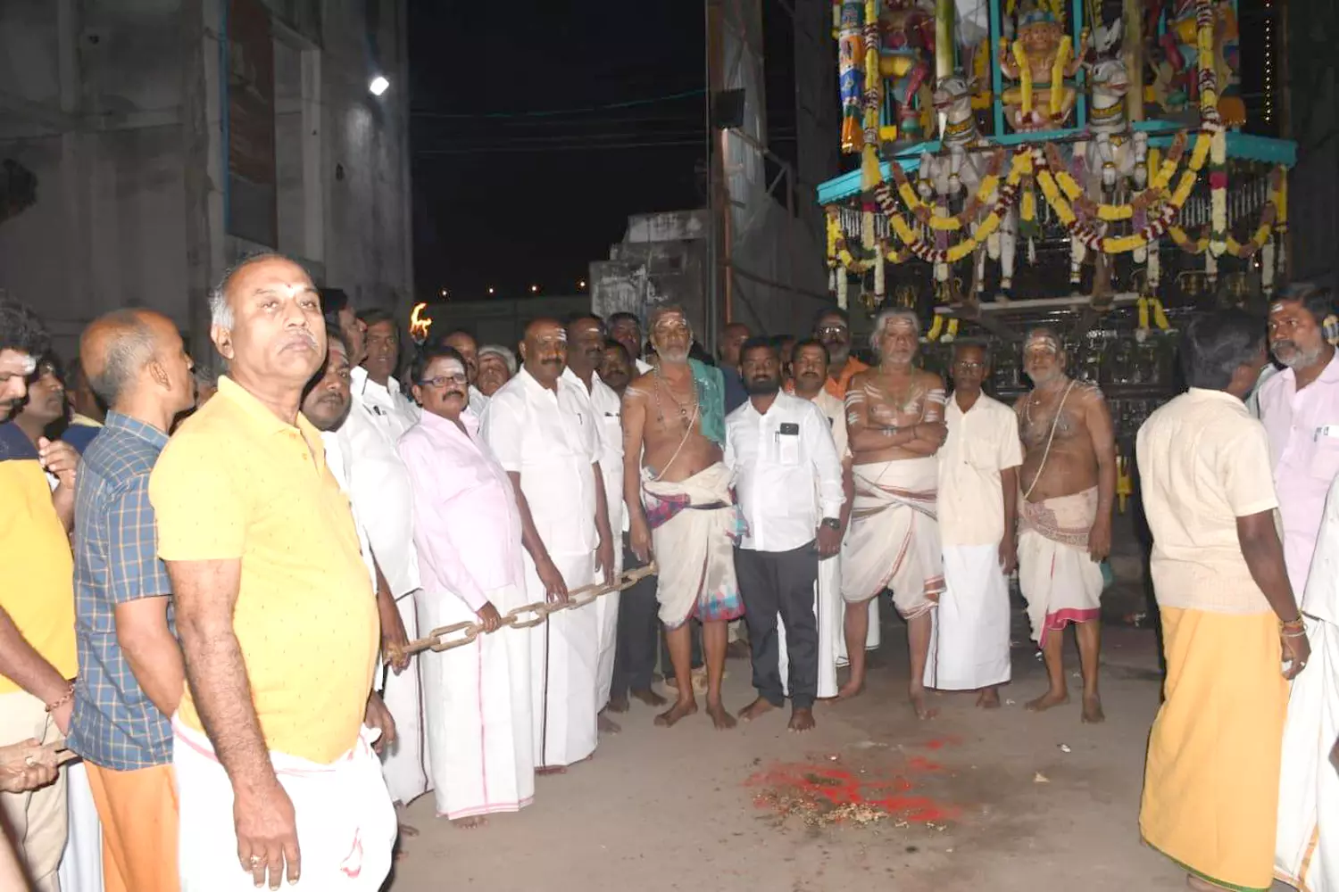 ரத சப்தமி பிரமோற்சவ விழா 7-ம் நாளான இன்று அதிகாலை ஒ.ஜோதி எம்.எல்.ஏ. வடம் பிடித்து தேரை தொடங்கி வைத்த காட்சி.
