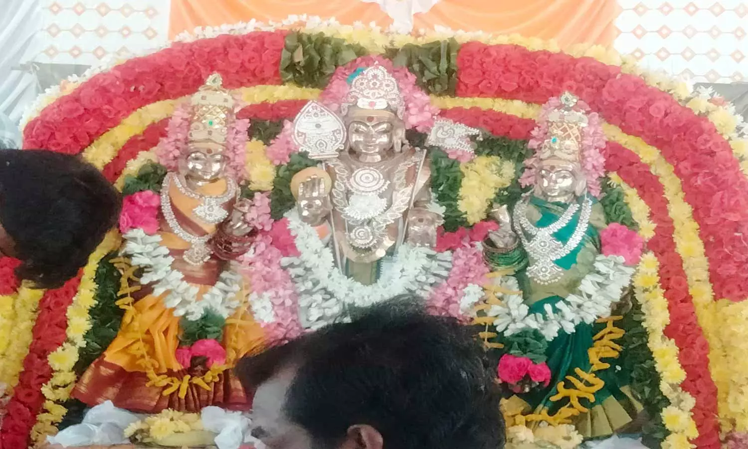 சிறப்பு மலர் அலங்காரத்தில் உற்சவர் வள்ளி தேவசேனா சமேத ஸ்ரீ சுப்பிரமணியர் சுவாமிக்கு பக்தர்கள் முன்னிலையில் திருக்கல்யாணம் நடைபெற்றது.