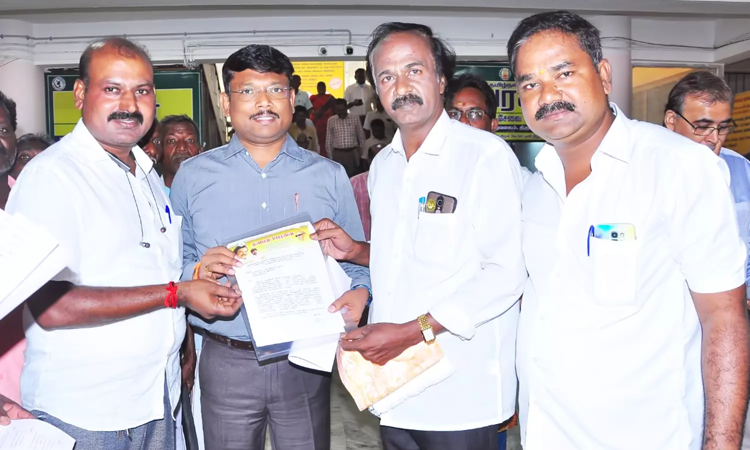 கலெக்டர் முருகேஷிடம் தளபதி பேரவை தலைவர் அருள்காந்த் மனு அளித்த போது எடுத்த படம்.
