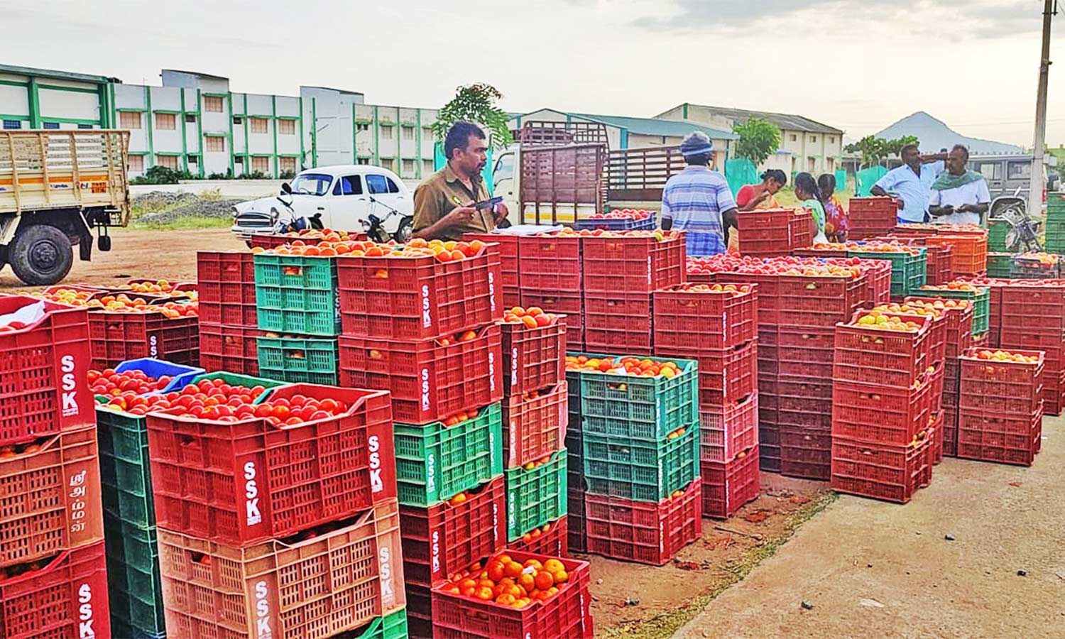 - தக்காளி வரத்து அதிகரிப்பு காரண மாக விலைக் கடுமையாக வீழ்ச்சியடை ந்துள்ளது.
