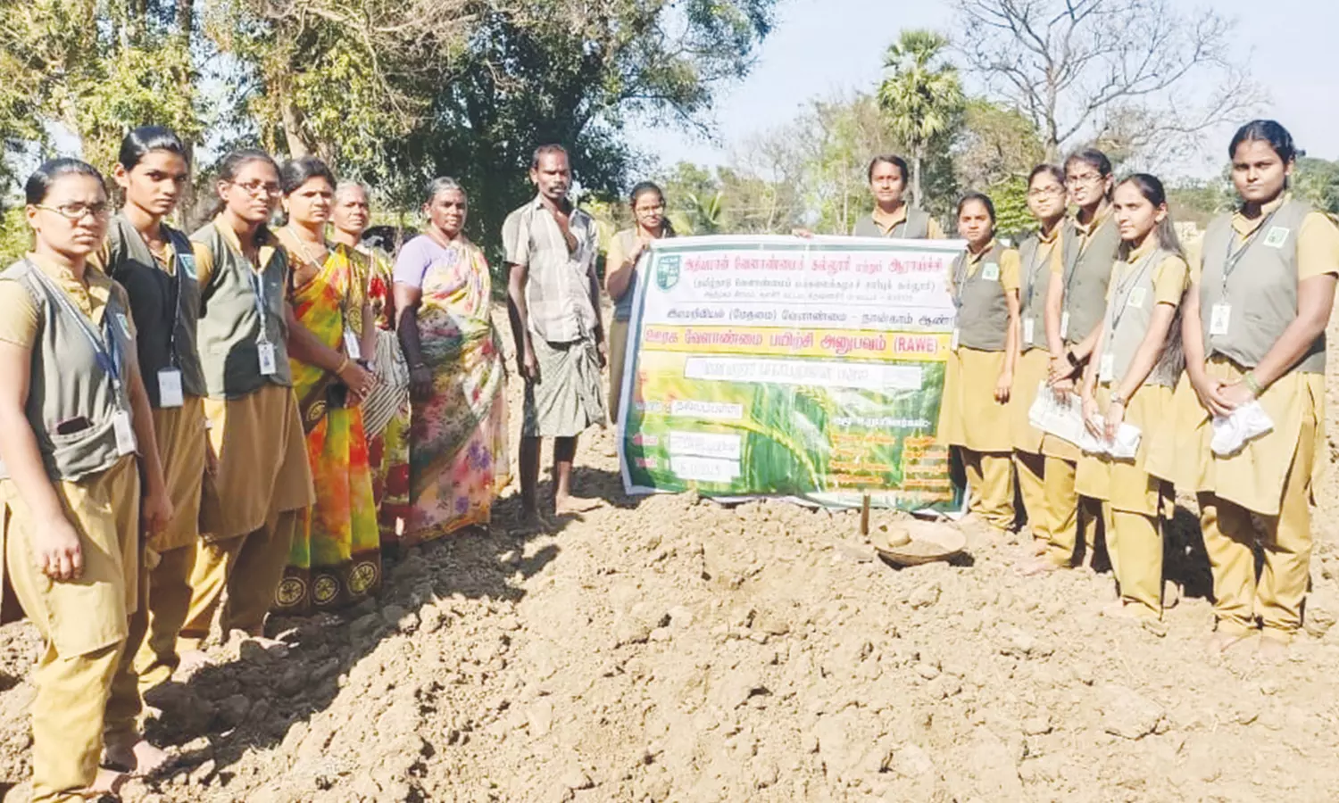 பயிற்சியில் வேளாண்மை கல்லூரியின் பூச்சியியல் துறை உதவி பேராசிரியர் தையல்நாயகி, மற்றும் மாணவிகளான அக்ஷயா பச்சிகலா, கிருத்திலோஷ்னி, பூங்குழலி, பிரகதீஸ்வரி, பிரஷாந்தி மேகலா, பிரசுனா, ராகித்தியா, ரக்ஷனா, வெண்ணிலா, சரிதா, சவுஜன்யா ஆகியோர் விவசாயிகளுக்கு, "மண் வளத்தின் முக்கியத்துவம் மற்றும் மண் சேகரிப்பு குறித்து பயிற்சி அளித்தனர்.