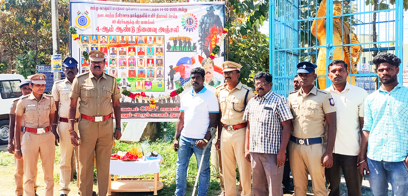 பயங்கரவாத தாக்குதலில் உயிரிழந்த சி.ஆர்.பி.எப் .வீரர்களின் திருவுருவ படங்களுக்கு வருவாய் மற்றும் காவல் துறையினர் மெழுகுவர்த்திகளை ஏற்றி அஞ்சலி செலுத்தினர்.