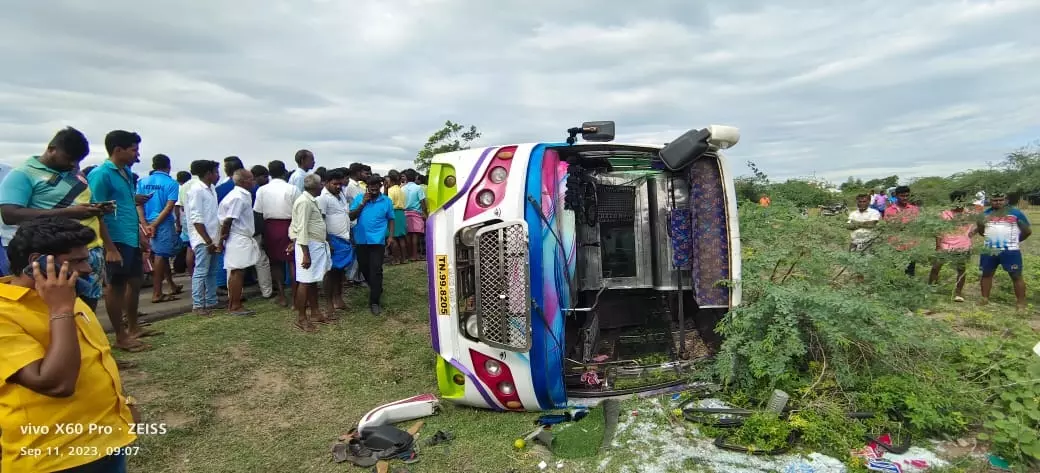 - திருச்சி சோமரசம்பேட்டையில் 30 பள்ளி குழந்தைகளை ஏற்றி சென்ற வேன் கவிழ்ந்து விபத்துக்குள்ளானது