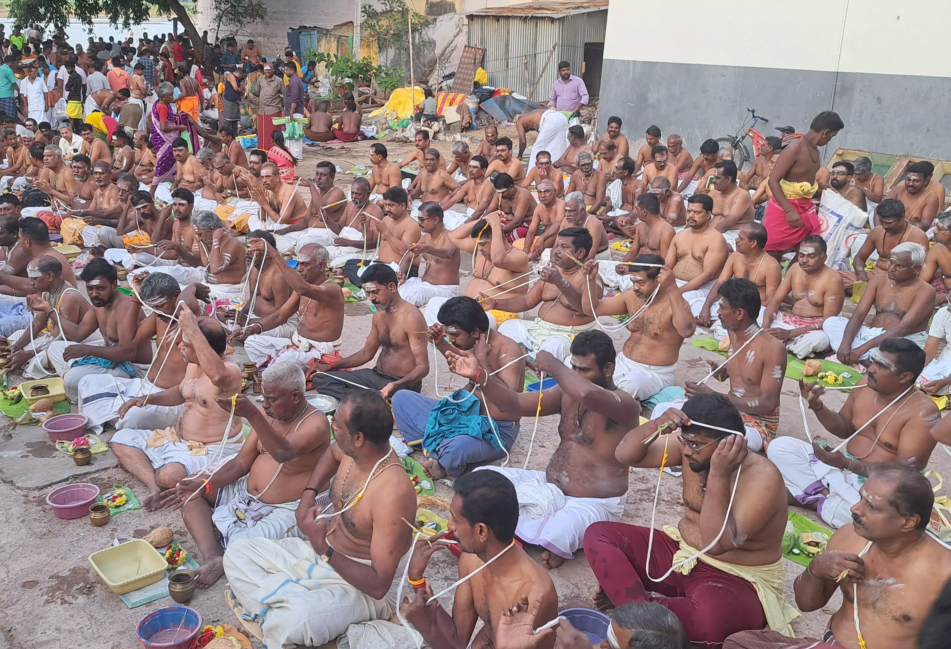 - ஸ்ரீரங்கம் அம்மா மண்டபத்தில் முன்னோர்களுக்கு தர்ப்பணம் கொடுக்க ஏராளமானவர்கள் குவிந்தனர்