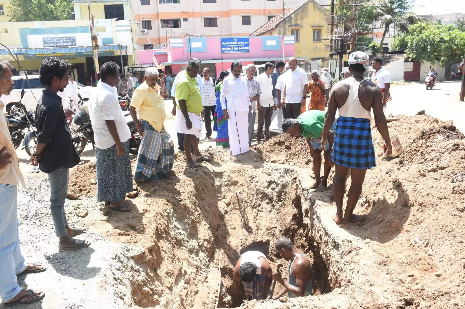- பாதாள சாக்கடை திட்ட பணிகள் மற்றும் குடிநீர் குழாய் பதிக்கும் பணிகளை அவர் பார்வையிட்டார்