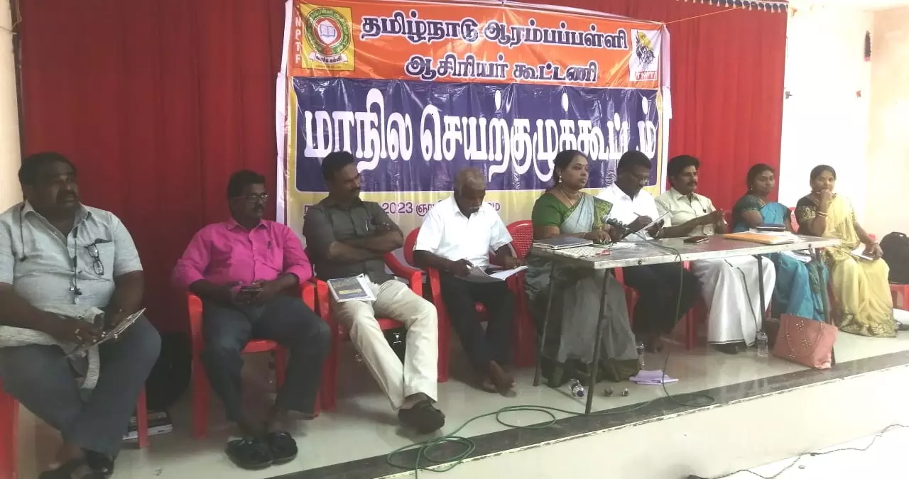 தமிழ்நாடு ஆரம்பப்பள்ளி ஆசிரியர் கூட்டணியின் மாநில செயற்குழு கூட்டம் திருச்சியில் நடந்தது. கூட்டத்திற்கு மாநில தலைவர் மணிமேகலை தலைமை தாங்கினார். மாவட்ட செயலாளர் ஆரோக்கியராஜ் வரவேற்றார். மாநில பொருளாளர் மத்தேயு வரவு - செலவு அறிக்கையை சமர்ப்பித்தார். மாநில பொதுச்செயலாளர் மயில் சிறப்புரை ஆற்றினார்.கூட்டத்தில் மாநில நிர்வாகிகள், மாவட்ட செயலாளர்கள் மற்றும் மாநில செயற்குழு உறுப்பினர்கள் கலந்து கொண்டனர்.முடிவில் பொதுக்குழு உறுப்பினர் ஜான் கிறிஸ்துராஜ் நன்றி கூறினார்.முன்னதாக தமிழ்நாடு ஆரம்பப்பள்ளி ஆசிரியர்கள் கூட்டணி பொதுச்செயலாளர் மயில் கூறும்போது,தி.மு.க. தனது சட்டமன்ற தேர்தல் அறிக்கையில் பழைய ஓய்வூதி திட்டத்தை மீண்டும் கொண்டு வருவோம். இடைநிலை ஆசிரியர்களின் ஊதிய முரண்பாடுகளை களைவோம்.கடந்த ஆட்சியில் பறிக்கப்பட்ட உயர்கல்விக்கான ஊக்க ஊதியத்தை மீண்டும் வழங்குவோம்.ஈட்டிய விடுப்பு ஒப்படைப்பு உரிமையை மீண்டும் வழங்குவோம் என்பன உள்ளிட்ட பல்வேறு வாக்குறுதிகளை வழங்கியது. ஆனால் திமுக ஆட்சி பொறுப்பு ஏற்று 2 ஆண்டுகள் முடிந்து விட்டது.மேற்கண்ட முக்கிய வாக்குறுதிகளில் ஒன்றைக் கூட நிறைவேற்ற முன்வரவில்லை. மேலும் பல்வேறு கோரிக்கைகளை வலியுறுத்தி தமிழ்நாடு ஆரம்பப்பள்ளி ஆசிரியர்கள் கூட்டணியின் சார்பில் வரும் செப்டம்பர் மாதம் 29 ம் தேதி அன்று சென்னையில் 10,000 ஆசிரியர்களை திரட்டி கோட்டை நோக்கி பேரணியாக சென்று தமிழ்நாடு முதலமைச்சர் மு.க.ஸ்டாலியிடம் கோரிக்கை மனு அளிப்பது என மாநில செயற்குழு கூட்டத்தில் முடிவு செய்யப்பட்டுள்ளது என்றார்.