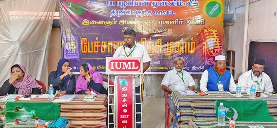 - திருச்சியில் இந்திய யூனியன் முஸ்லிம் லீக் கட்சி சார்பில் பேச்சாளர் பயிற்சி முகாம் நடத்தப்பட்டது