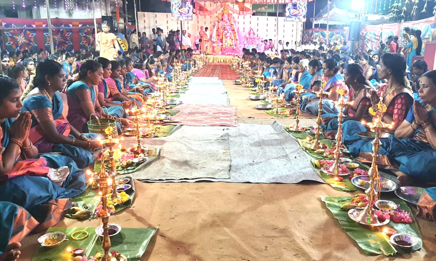 - திருவிளக்கு பூஜையில் 108 திருவிளக்கு மந்திரங்கள் முழங்கப்பட்டன