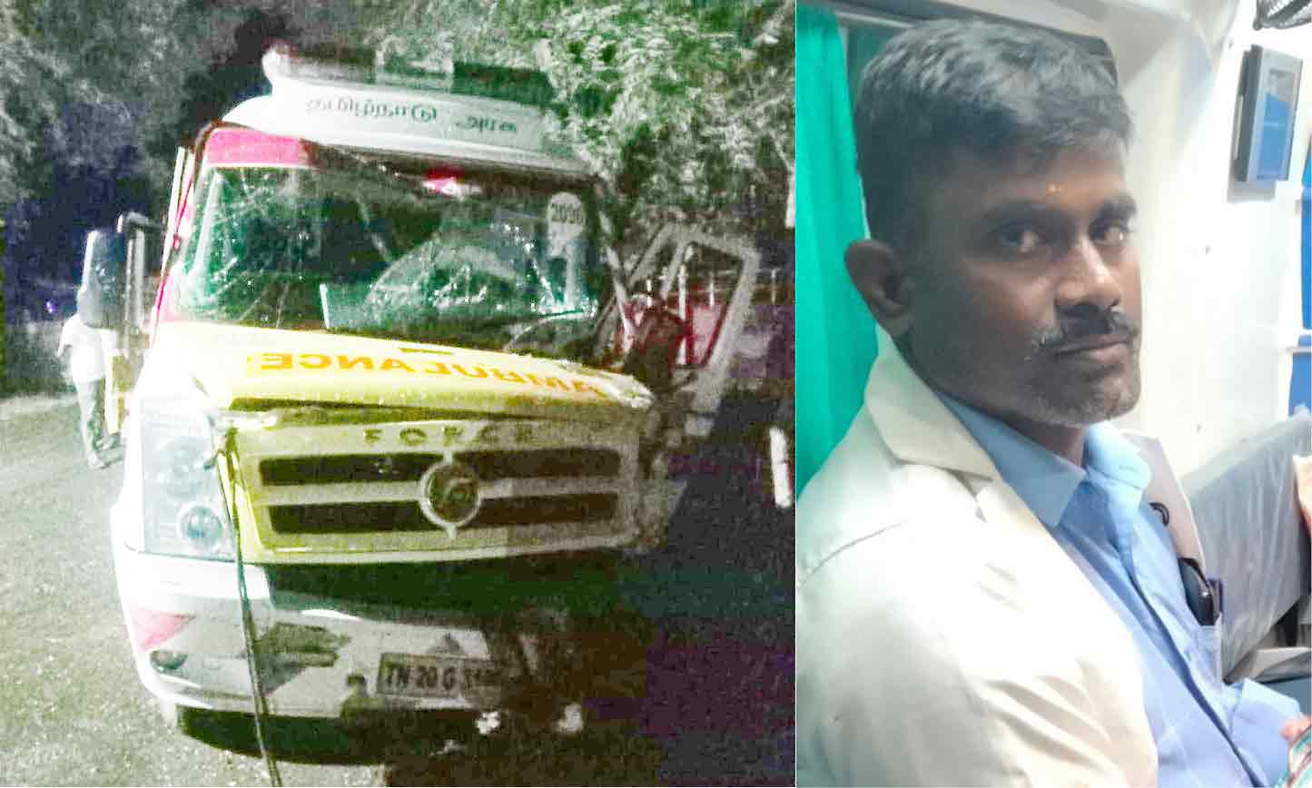 108 ஆம்புலன்ஸ் மரத்தில் மோதி மருத்துவ உதவியாளர் சாவு
