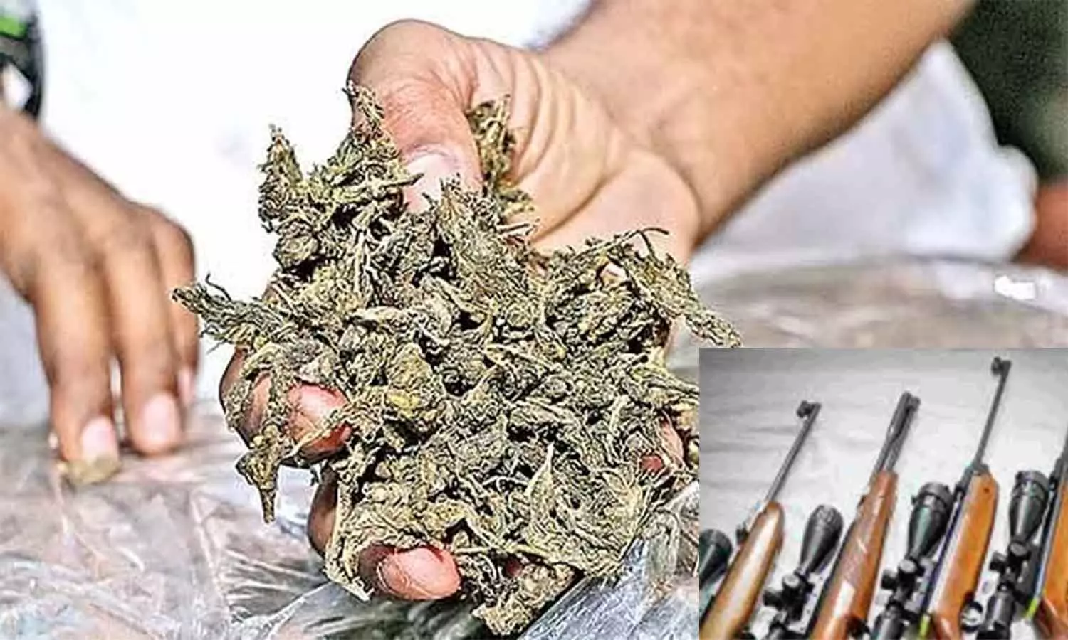 வீட்டில் பதுக்கிய 3 நாட்டு துப்பாக்கி, கஞ்சா பறிமுதல்