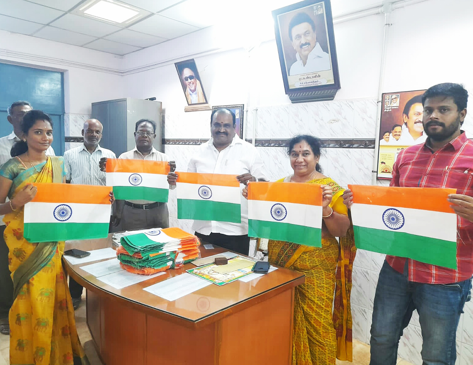 தேசியக் கொடிகள் 50 ஊராட்சி மன்ற தலைவர்களிடம் ஒப்படைக்கப்பட்டு ஊராட்சி மன்ற தலைவர்கள் வாயிலாக ஊராட்சி மன்ற செயலாளர் மற்றும் ஊராட்சி பணியாளர்கள் மூலமாக வீடு தோறும் வழங்கப்பட உள்ளது.