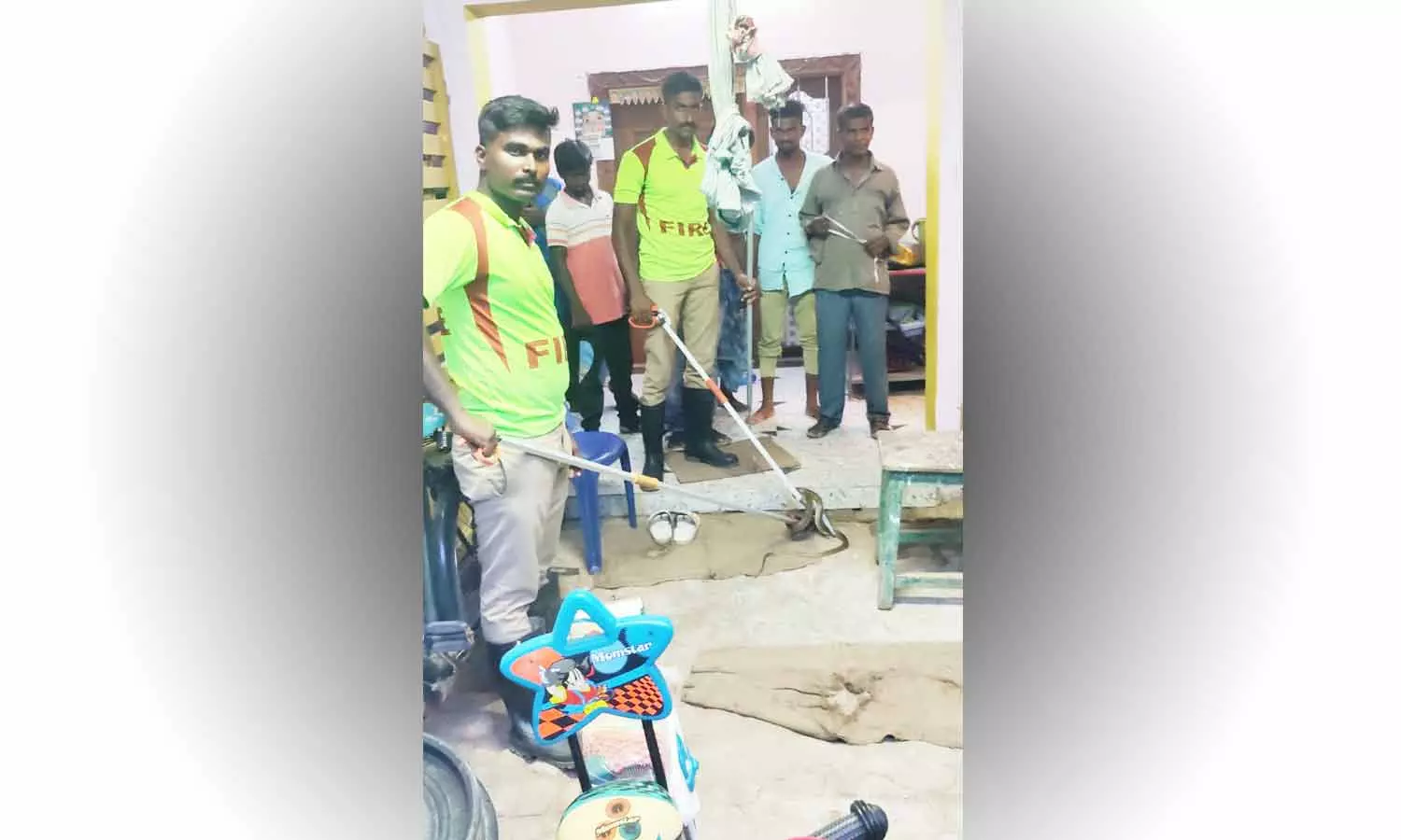 - தீயணைப்பு துறை வீரர்கள் போராடி பாம்பை பிடித்தனர்