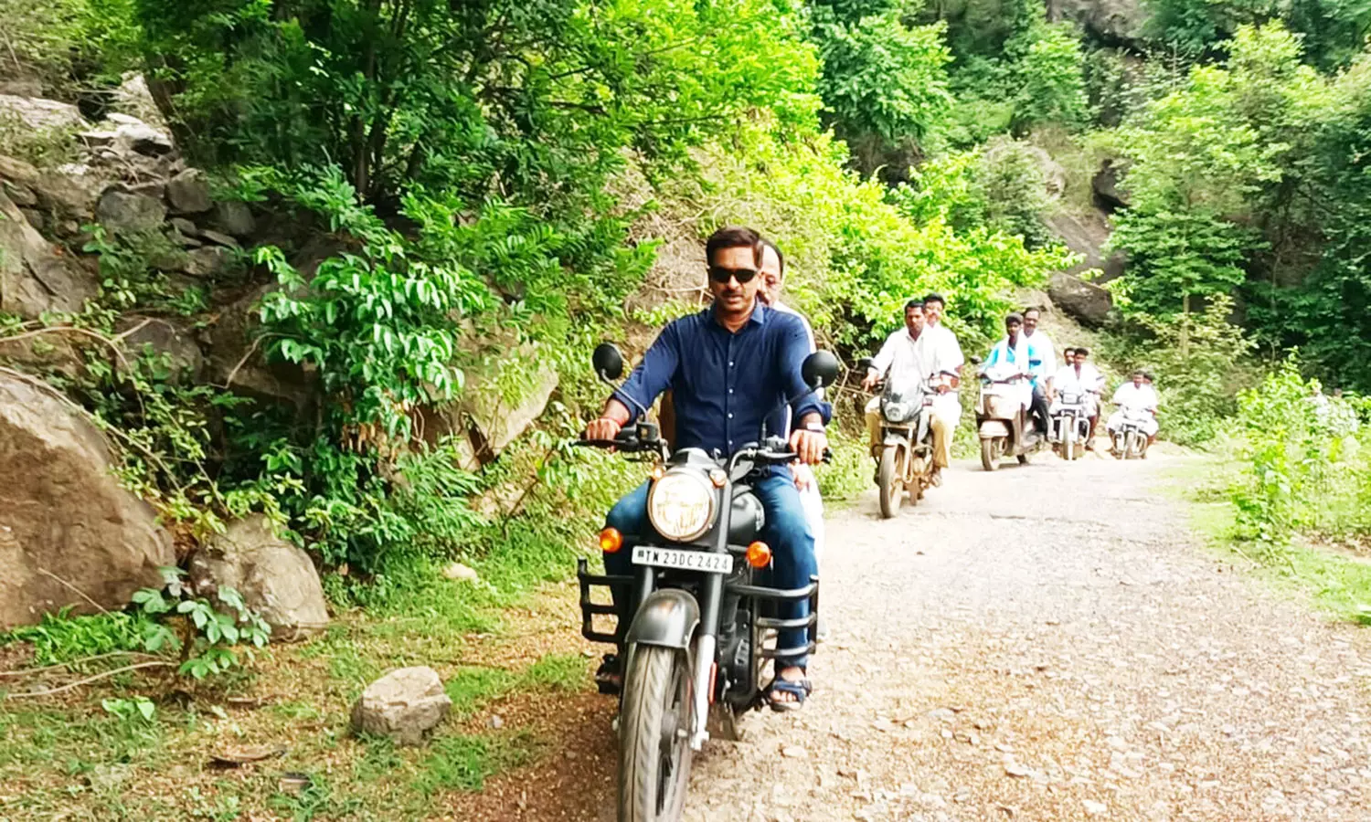 தெள்ளை மலை கிராமத்திற்கு பைக்கில் சென்று கலெக்டர், எம்.எல்.ஏ. ஆய்வு