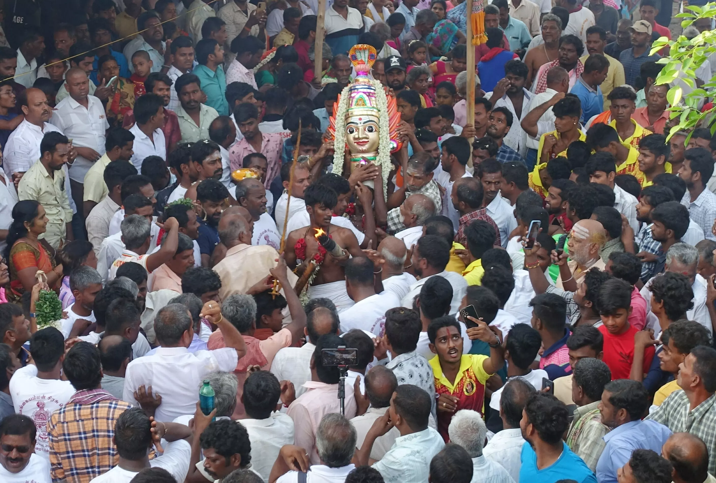 சிறப்பு பூஜைகள் செய்யப்பட்டு கெங்கையம்மன் சிரசு பக்தர்கள் வெள்ளத்தில் மிதந்து வந்தது.