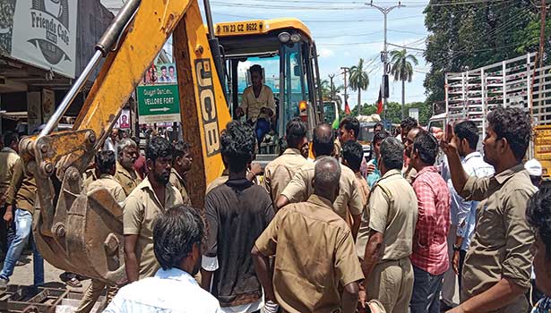 இதனால் ஆக்கிரமிப்பு அகற்றும் பணியில் தொய்வு ஏற்பட்டது. ஆக்கிரமிப்புகளை அகற்ற எதிர்ப்பு தெரிவித்து ஆட்டோ டிரைவர்கள் வாக்குவாதத்தில் ஈடுபட்ட சம்பவம் அப்பகுதியில் பரபரப்பு நிலவியது.
