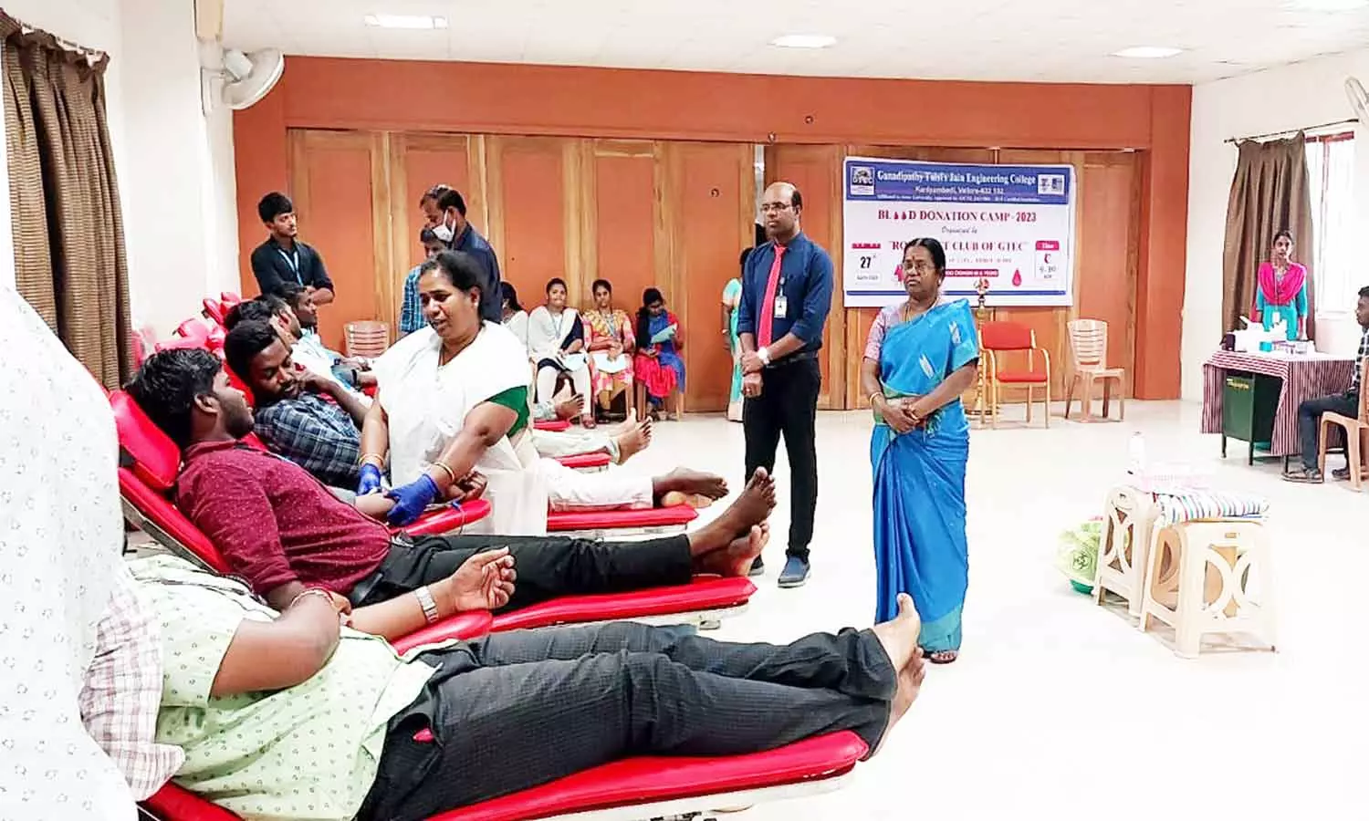 வேலூர் கணாதிபதி துளசி'ஸ் ஜெயின் பொறியியல் கல்லூரியில், ரத்ததான முகாம் கல்லூரி வளாகத்தில் நடைபெற்றது.