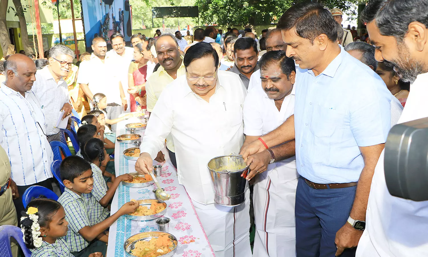 - மாணவர்களுக்கு உணவு பரிமாறினார்