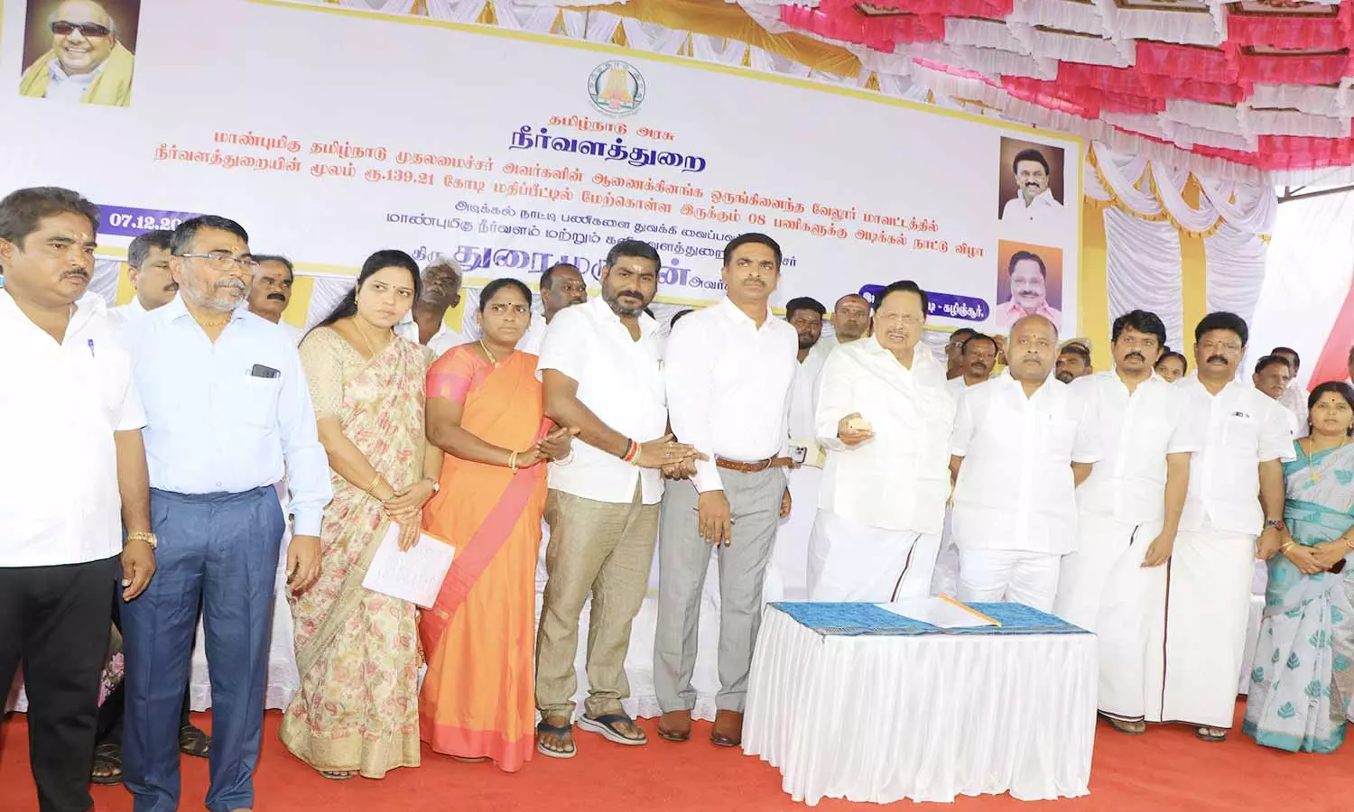 அமைச்சர் துரைமுருகன் சிறப்பு விருந்தினராக கலந்து கொண்டு ஒருங்கிணைந்த வேலூர் மாவட்டத்தில் உள்ள ஏரிகளை ரூ.139.21 கோடியில் புணரமைப்பு பணிகளுக்கான அடிக்கல் நாட்டினார்.