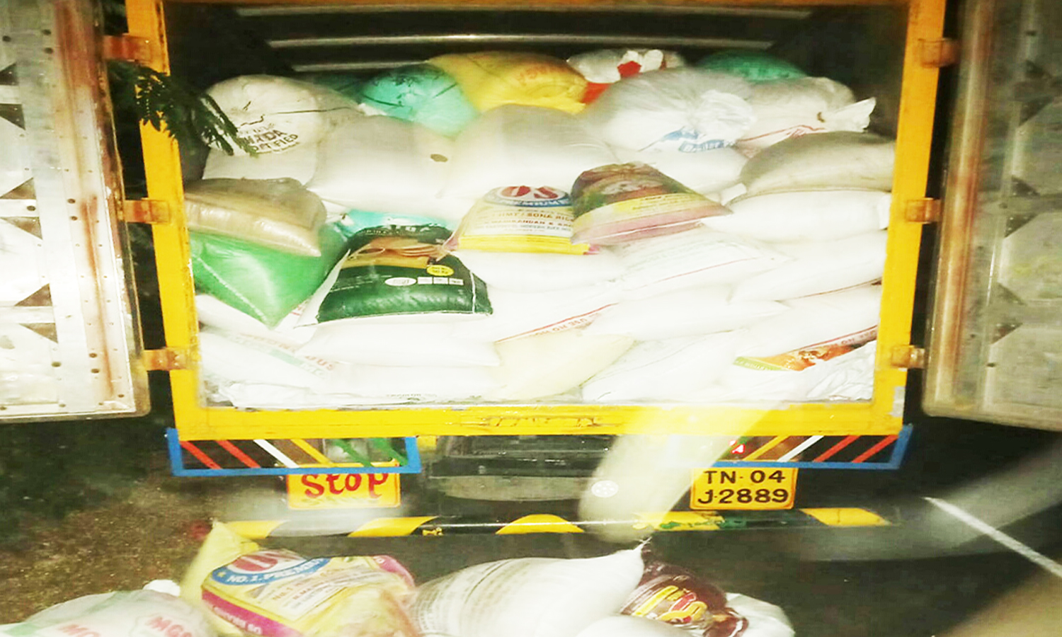 ரேசன் அரிசி கடத்திய லாரியை பறிமுதல் செய்த காட்சி.