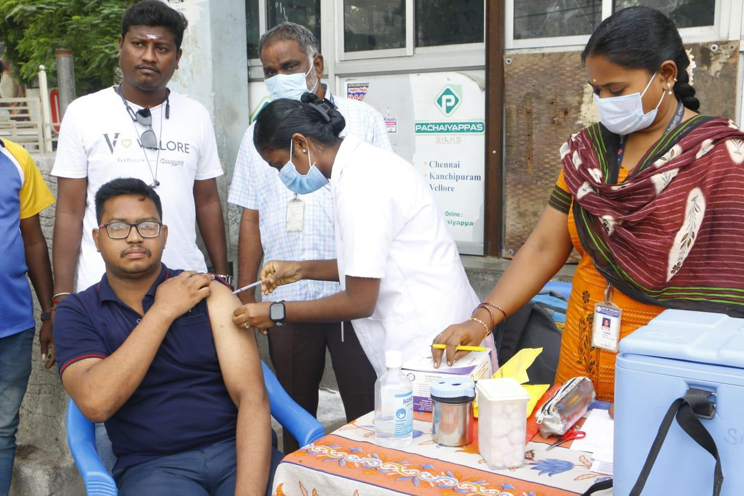 இந்த நிலையில் 32 வது சிறப்பு கொரோனா தடுப்பூசி முகாம் இன்று தமிழகம் முழுவதும் 1 லட்சம் மையங்களில் முகாம் அமைத்து தடுப்பூசி செலுத்திக் கொண்டனர். அதன்படி வேலூர் மாவட்டத்தில் அரசு மருத்துவமனை, ஆரம்ப சுகாதார நிலையங்கள், நகரப்புற சுகாதார மையங்கள், பள்ளிகள் என 948 மையங்களில் இன்று காலை முதல் தடுப்பூசி செலுத்தும் முகாம் நடைபெற்றது.