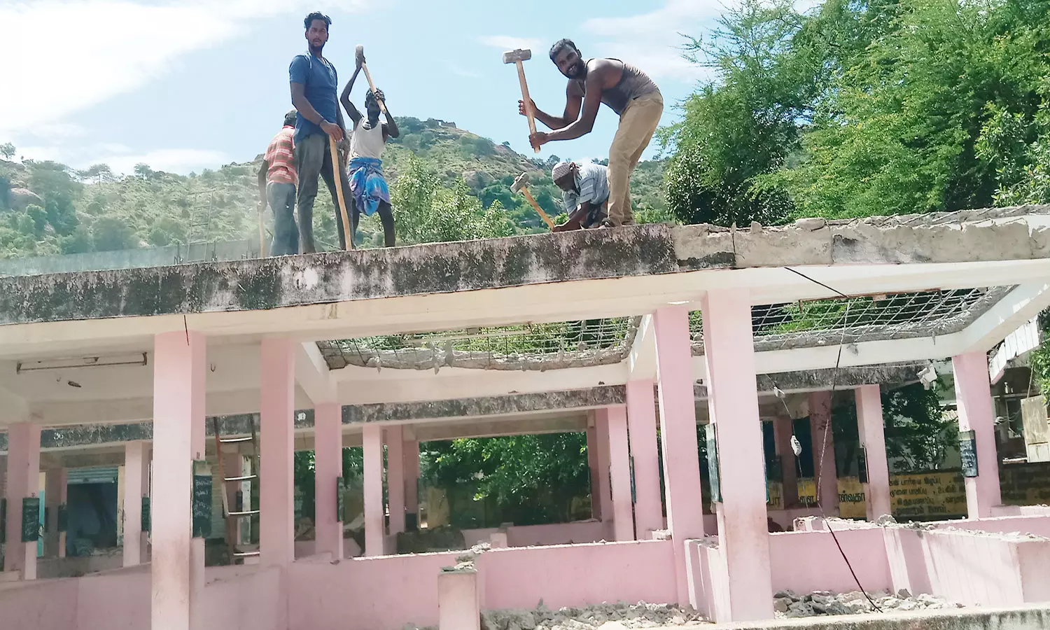 இடிக்கப்படும் காகிதப்பட்டறை உழவர் சந்தை கட்டிடம்.