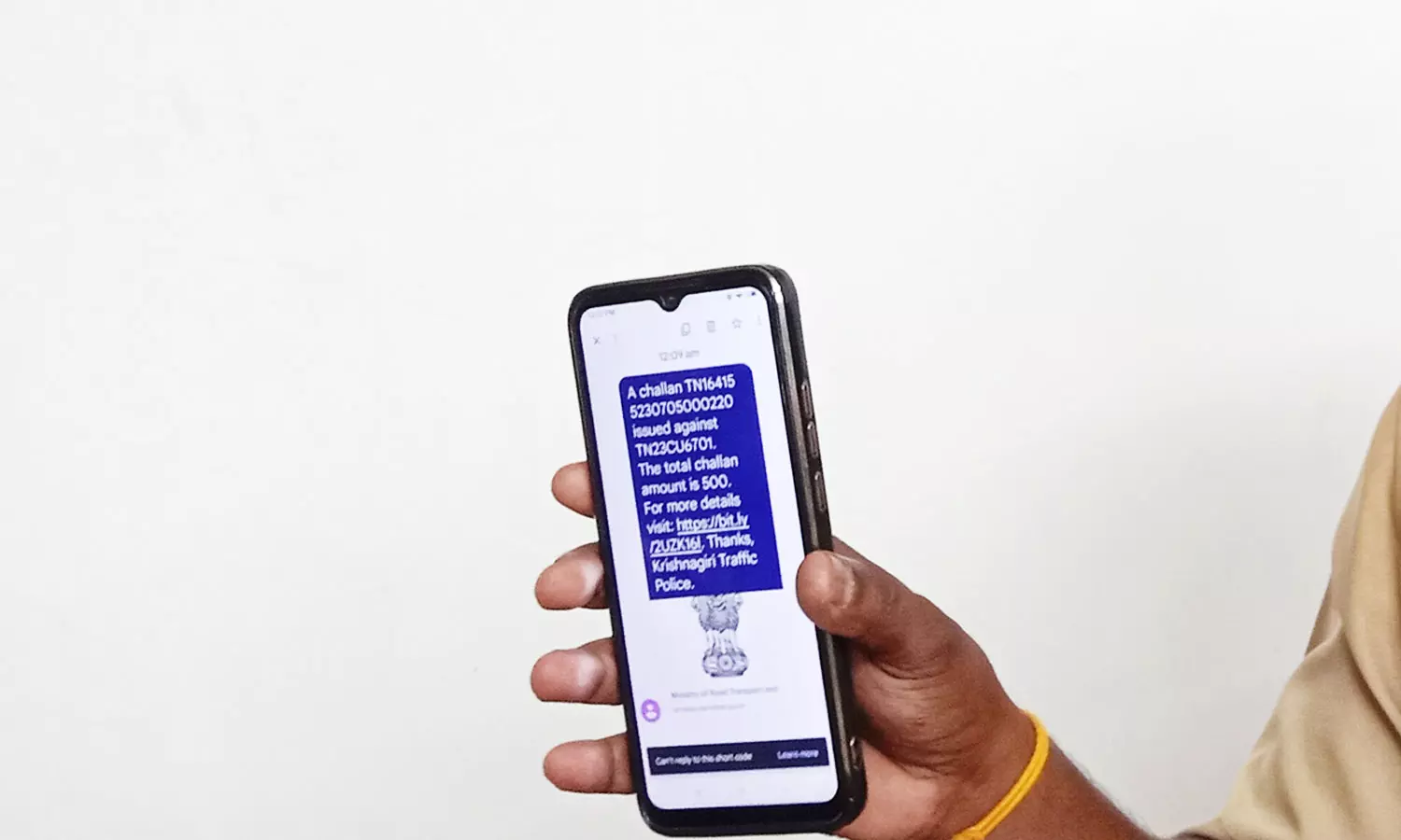 - போக்குவரத்து விதி மீறியதாக குறுஞ்செய்தி வந்தது